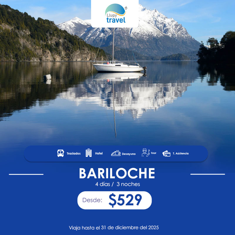 - Traslado aeropuerto – hotel – aeropuerto (BRC), en servicio regular
